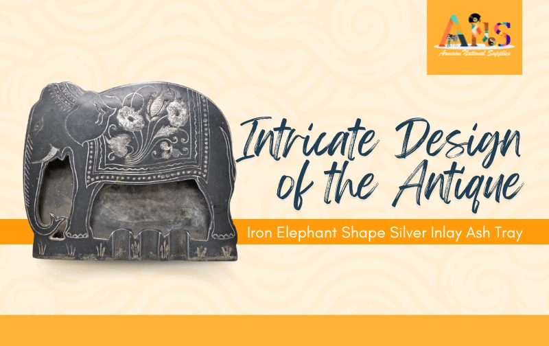 Explore the Intricate Design of the Antique Iron Elephant Shape Silver Inlay Ash Tray